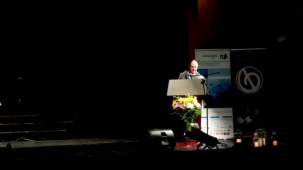 Στο video o χαιρετισμός του Υφυπουργού Πολιτισμού Κύπρου και δημοφιλούς καλλιτέχνη Μιχάλη Χατζηγιάννη, τον οποίο διαδέχθηκαν στο βήμα ο Πρόεδρος του Διεθνούς Φεστιβάλ Ποίησης Λάρνακας Δρ Τριαντάφυλλος Η. Κωτόπουλος και η Καλλιτεχνική Διευθύντριά του, ποιήτρια, λογοτέχνιδα και Επιθεωρήτρια Δημοτικής Εκπαίδευσης Ελένη Αρτεμίου-Φωτιάδου.
