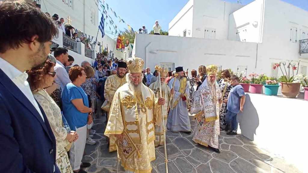 Προεξάρχοντος του Σεβασμιωτάτου Μητροπολίτη Νέας Σμύρνης Συμεών και συνιερουργούντων του Πανιερωτάτου Μητροπολίτη Φαναρίου Αγαθαγγέλου και του Σεβασμιωτάτου Μητροπολίτη Σύρου & Σίφνου Δωροθέου Β΄, τελέσθηκε στον Ι.Ν. του Αγίου Σπυρίδωνος, Μητρόπολης της Σίφνου, η Τρισαρχιερατική Θεία Λειτουργία για τον εορτασμό τόσο της Αναλήψεως του Κυρίου, όσο και της τοπικής γιορτής της Παναγίας Χρυσοπηγής, σε ανάμνηση του σωτήριου για τους κατοίκους του νησιού θαύματος της Πολιούχου και Προστάτιδας της Σίφνου. Στη Λειτουργία συλλειτούργησε, επίσης, ο Ηγούμενος της Ιεράς Μονής Βρύσης Αρχιμανδρίτης Ιωαννίκιος, καθώς και πολλοί εκ των Εφημερίων της Σίφνου, παρουσία εκπροσώπων τοπικών Φορέων, Συλλόγων και Οργανώσεων, Εκπαιδευτικών και Μαθητών όλων των Σχολείων του νησιού, αλλά και νεαρών κοριτσιών-μελών του Πολιτιστικού Συλλόγου Σίφνου με παραδοσιακές φορεσιές και βεβαίως πλήθους πιστών.