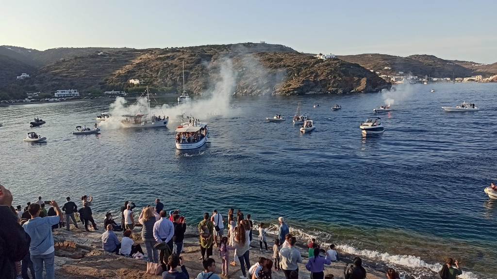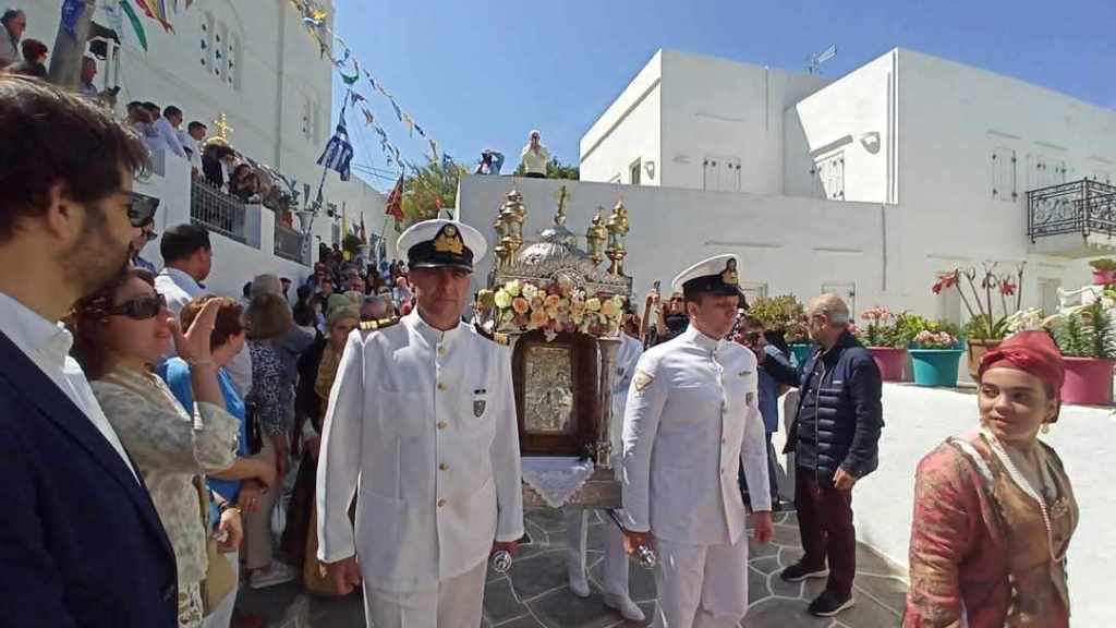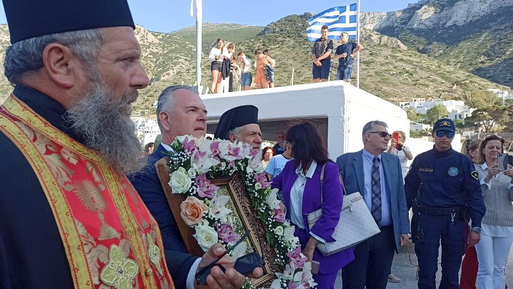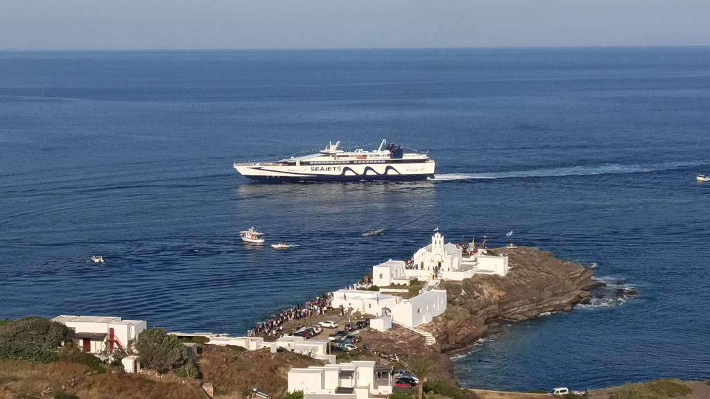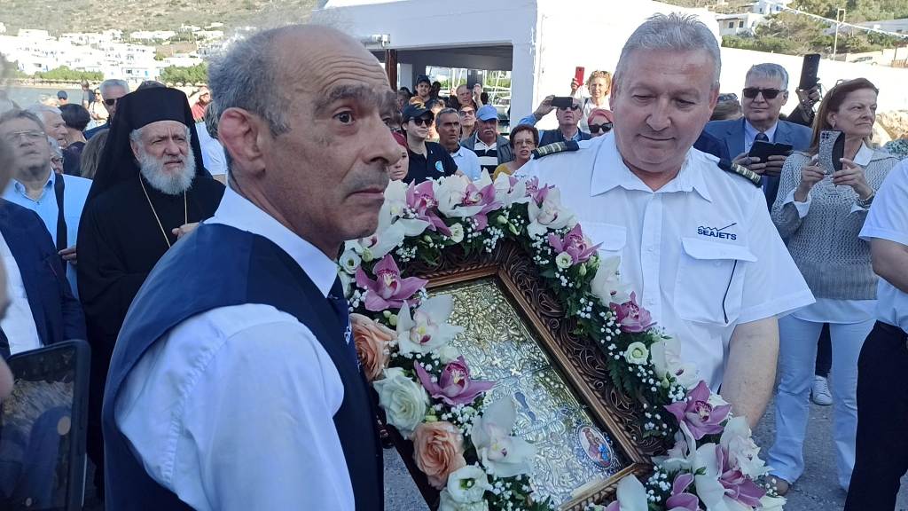 Αμέσως μετά την ολοκλήρωση της Παράκλησης όλοι κατευθύνθηκαν προς την προβλήτα του λιμανιού, προκειμένου να συνοδεύσουν την εικόνα της Χρυσοπηγής στην επιβίβασή της στο πλοίο της γραμμής, που την μετέφερε στον ναό Της. Ακολούθησαν εντυπωσιακές εικόνες από την αποβίβαση της Εικόνας στο Βράχο της Χρυσοπηγής και αμέσως μετά ο Μέγας Εόρτιος Τρισαρχιερατικός Εσπερινός, χοροστατούντος του Πανιερωτάτου Μητροπολίτου Φαναρίου Αγαθάγγελου και συγχοροστατούντων του Σεβασμιωτάτου Μητροπολίτη Νέας Σμύρνης Συμεών και του Σεβασμιωτάτου Μητροπολίτη Σύρου & Σίφνου Δωρόθεου Β’. Στους φετινούς εορτασμούς συμμετείχε και η ιδιοκτήτρια του Ομίλου Greek News and Radio Fl Ιωάννα Λαζάρου, μαζί με τους δημοσιογράφους -και συνεργάτες της- Κατερίνα Μαρινάκη και Βασίλη Τσούνη. Ακολουθεί video από το κανάλι μας στο YouTube, από την επιβίβαση της Εικόνας στο πλοίο της γραμμής που την μετέφερε στον ναό Της.