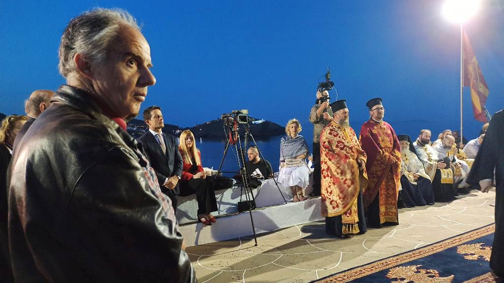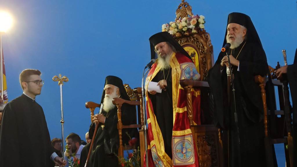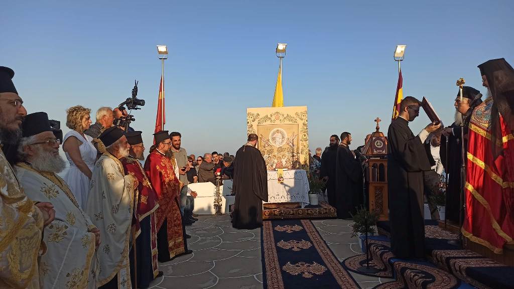 Ακολουθούν εντυπωσιακές εικόνες από την αποβίβαση της Εικόνας της Χρυσοπηγής στον Ιερό Βράχο, καθώς και στιγμιότυπα από τον πολυαρχιερατικό πανηγυρικό Εσπερινό και την Τράπεζα για όλους τους πιστούς.