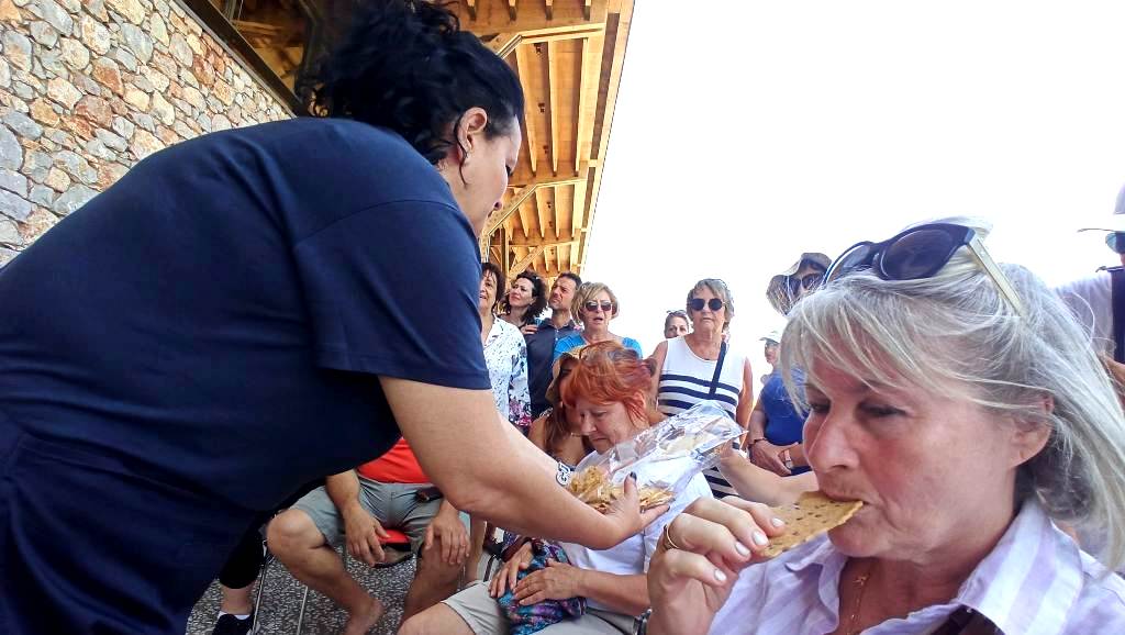Τέλος, mini ντάκος με παξιμάδι επτάζυμο, χιώτικο τυρί και κρίταμο, αλλά και σαραγλί, ολκλήρωσαν τον μακρύ κατάλογο τοπικών εδεσμάτων που δοκιμάσαμε στο περίπτερο της «Μυρωδάτης Χίου».