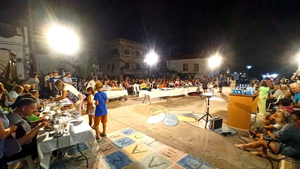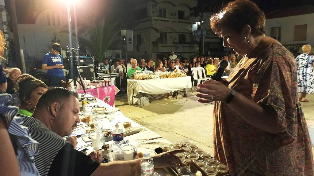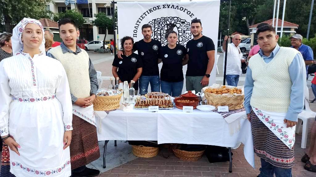Τα κεράσματα του Συλλόγου περιελάμβαναν, μεταξύ άλλων: σούπα με φιδέ χερίσιο και ντομάτα, κολοκυθοανθούς γεμιστούς, καλοκαιρινά αυγοκαλάμαρα, πίτα με ταμπουρά (γλυκιά κολοκύθα), καστανή ζάχαρη και ξηρούς καρπούς και κολοκυθόπιτα με ποικιλία τυριών, γιαούρτι και μυρωδικά. Επίσης, τα μέλη του Συλλόγου είχαν ετοιμάσει μουσταλευριά, αλλά και μελαλευριά, όπου ο μούστος αντικαθίσταται με μέλι.