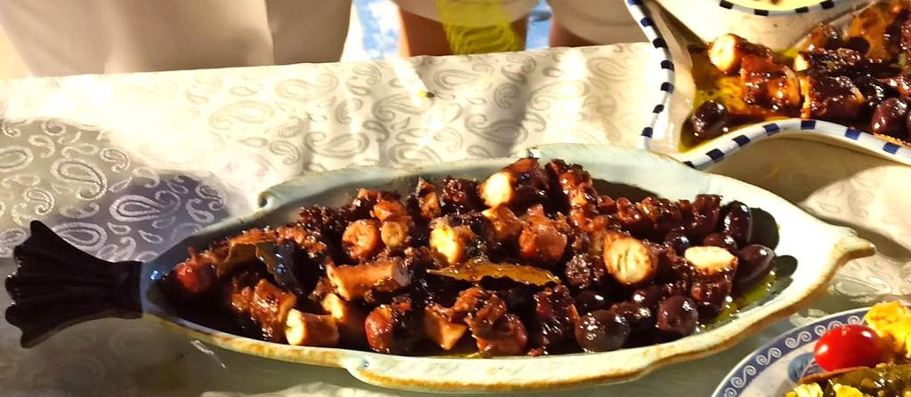Η Κωνσταντίνα Χουλιάρα μαγείρεψε χταπόδι ριγανάτο, που το συνόδευσε με ελιές και τηγανόψωμο.