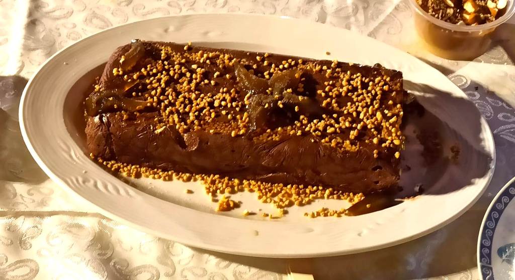 Η Δέσποινα Χαβιάρα διαγωνίστηκε με κορμό σοκολατένιο που περιείχε ταχίνι, μέλι, χαλβά αντί μπισκότου, κακάο και καβουρδισμένο φουντούκι.
