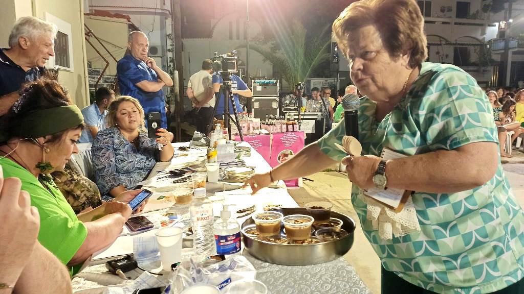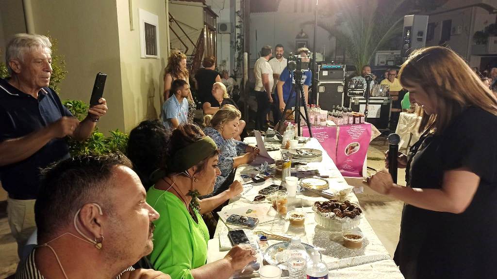 Οι Οινούσσες, η προαιώνια γειτόνισσα της Χϊου, έδωσε το γευστικό παρόν της με σμυρνέικα σουτζουκάκια, χταποδάκι στιφάδο, αλλά και ραβανί με μαστίχα.