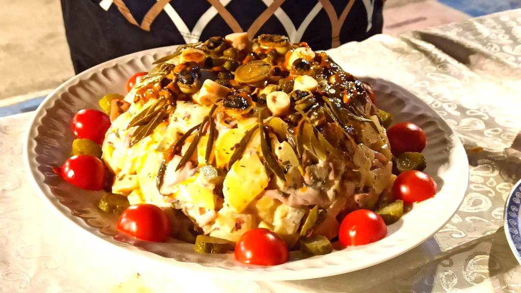 Η Αγγελα Τσιμούνη παρουσίασε πατατοσαλάτα θαλασσινών με κρίταμο, αχινούς, πεταλίδες, κάπαρη, ντομάτες, πατάτες, όλα λαγκαδούσικα όπως τόνισε, αλλά και χταπόδι, ξύδι, ελαιόλαδο, ρίγανη και θυμάρι.