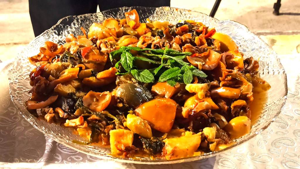 Η λίστα εδεσμάτων περιελάμβανε: ιμάμ, χορτόπιτα με τραχανά, μασουράκια με μαστίχα, τραχανότο με γαρίδες και μαστίχα, κατημέρια, μεθυσμένα και βέβαια τα δημοφιλή γιαπράκια.