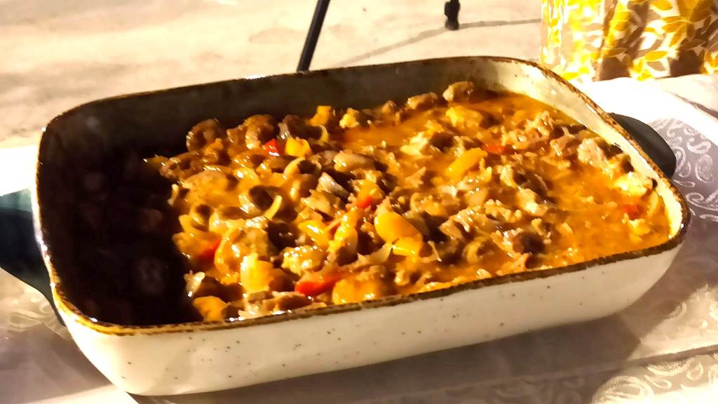 Ακολούθησε η Φιλιώ Μπακολα και σπετζοφάι με χοιρινό και λουκάνικο χωριάτικο.