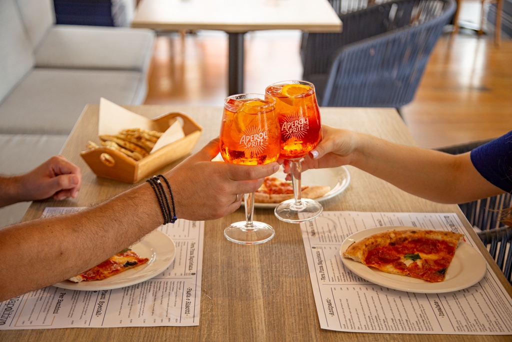 Η απoλαυστική εμπειρία που ακούει στο όνομα Spritz all’Italiana ήρθε αυτό το καλοκαίρι για να εμπλουτίσει ακόμα περισσότερο την κάρτα των aperitivo με τρεις μοναδικές γεύσεις. Συνδυάστε, λοιπόν, τα πιάτα φρέσκων ζυμαρικών της επιλογής σας με το νέο Dolce Vita Spritz με φράουλα ή με τοFrozen Aperol για ένα πιο δροσιστικό twist, ενώ μία επίσης υπέροχη επιλογή, είναι η pizza Prosciutto e Rucola με φρέσκια μοτσαρέλα και προσούτο, η οποία συνδυάζεται άψογα με το νέο δροσερό Limoncello Spritz.