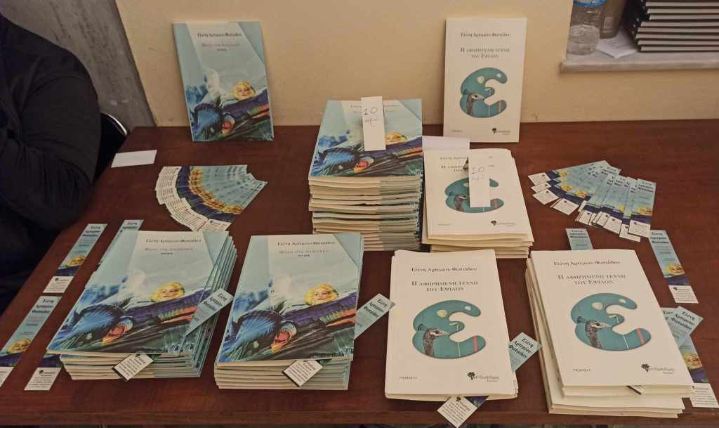 Η εκδήλωση παρουσίασης δύο πολυσυζητημένων ποιητικών συλλογών με τίτλο «Η Αφηρημένη Τέχνη του Έψιλον» και «Φώτα στη Διαπασών«, της γνωστής και καταξιωμένης Κύπριας ποιήτριας και λογοτέχνιδος Ελένης Αρτεμίου-Φωτιάδου, πραγματοποιήθηκε με απόλυτη επιτυχία και μεγάλη προσέλευση κοινού τη Δευτέρα 23 Οκτωβρίου, στους εξαιρετικούς χώρους τέχνης και πολιτισμού της Δημοτικής Πινακοθήκης Πειραιά, σε άψογη όπως πάντα διοργάνωση των εκδόσεων «Μανδραγόρας«.