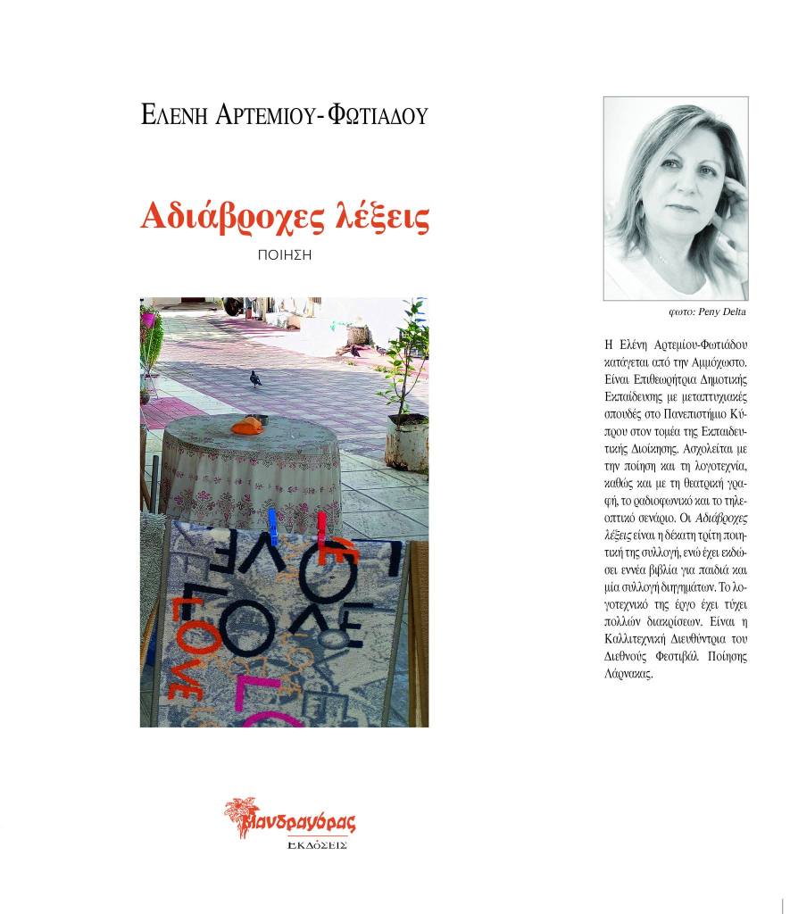 Η πόλη της Λάρνακας είναι έτοιμη να φιλοξενήσει ένα από τα πλέον πολυαναμενόμενα πολιτιστικά γεγονότα της χρονιάς, το 3ο Διεθνές Φεστιβάλ Ποίησης 2024 «Ο ποιητικός λόγος εκφραστής της ειρήνης και της διαφορετικότητας», το οποίο συνδιοργανώνεται από το Υφυπουργείο Πολιτισμού – Τμήμα Σύγχρονου Πολιτισμού και τη δομή Πολιτισμού Culture& Αrt EleTrion, τελεί δε υπό την αιγίδα της Πρεσβείας της Ελλάδας στην Κύπρο, ενώ το στηρίζουν, επίσης, ο Δήμος Λάρνακας και το Πανεπιστήμιο Δυτικής Μακεδονίας. Η διοργάνωση, που θα πραγματοποιηθεί από τις 18 έως τις 21 Απριλίου, υπόσχεται να φέρει κοντά ποιητές και ποιήτριες, καθώς και μουσικούς και καλλιτέχνες από την Κύπρο και το εξωτερικό, δημιουργώντας μια γέφυρα ανάμεσα στην παραδοσιακή και σύγχρονη ποιητική έκφραση. Όλες οι εκδηλώσεις του Φεστιβάλ έχουν ελεύθερη είσοδο και θα φιλοξενηθούν στο Δημοτικό Θέατρο «Γ. Λυκούργος» στη Λάρνακα. Το μεγάλο τούτο πολιτιστικό γεγονός αποτελεί πλέον ένα θεσμό, που κρατά επάξια τη Λάρνακα και ολόκληρη την Κύπρο στο επίκεντρο του διεθνούς περί ποίησης ενδιαφέροντος. Kαλλιτεχνική Διευθύντρια του Φεστιβάλ, το οποίο οραματίστηκε ο Καθηγητής και Πρόεδρός του Τριαντάφυλλος Η. Κωτόπουλος, είναι η καταξιωμένη ποιήτρια και λογοτέχνιδα Ελένη Αρτεμίου-Φωτιάδου, Επιθεωρήτρια Δημοτικής Εκπαίδευσης με καταγωγή από την Αμμόχωστο. Η ίδια, μέσα από τη συνέντευξη-ποταμό που μας παραχώρησε, μιλά για τους πολλαπλούς ρόλους της, για τα πρότυπα και τις προτεραιότητές της, για την αγαπημένη ιδιαίτερη πατρίδα της, την Αμμόχωστο, για το πλούσιο συγγραφικό και ποιητικό της έργο, καθώς και για το Διεθνές Φεστιβάλ Ποίησης Λάρνακας και το πώς οραματίζεται την εξέλιξή του.