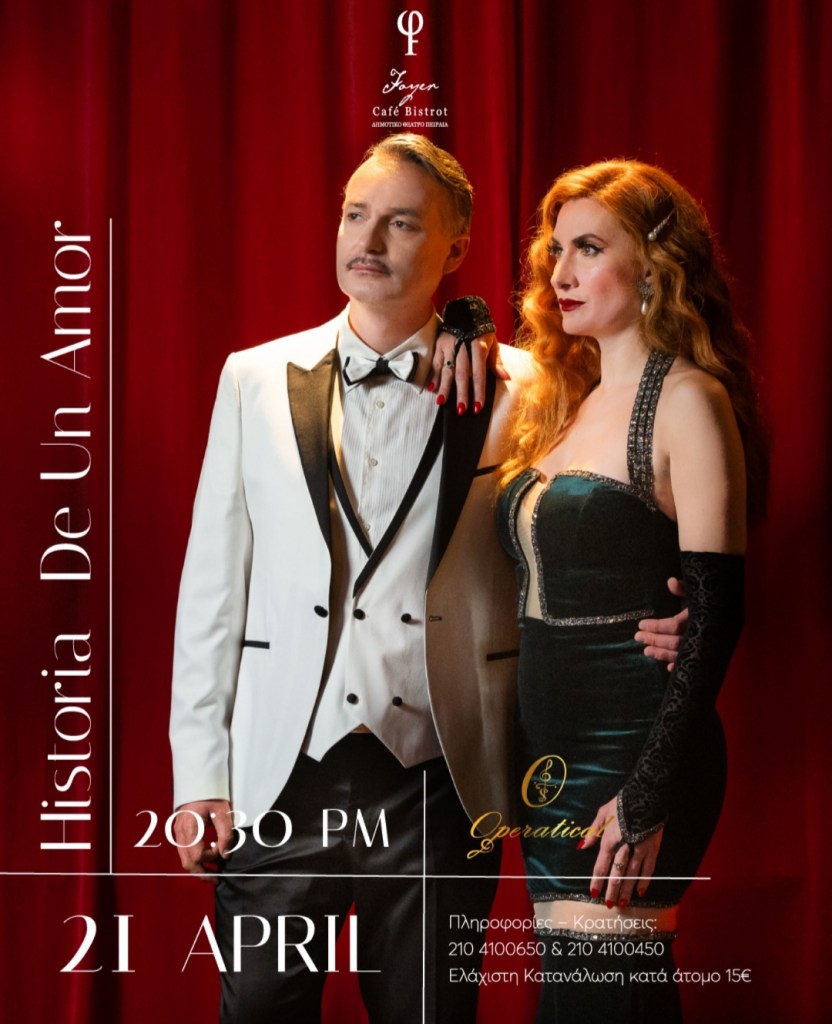 Οι Operatical μας ταξιδεύουν στον χρόνο με μία ιστορία αγάπης, μέσα από τη μοναδική εμφάνισή τους υπό τον τίτλο «Historia de un amor». Η σοπράνο Ναδίνα Τζιάτζιου και ο τενόρος Θάνος Ζήσης θα παρουσιάσουν τραγούδια του έρωτα και της αγάπης, σε ένα συναρπαστικό μουσικό ταξίδι, την Κυριακή 21 Απριλίου, στις 8:30 μ.μ., στο ατμοσφαιρικό Foyer Café Bistrot του Δημοτικού Θεάτρου Πειραιά. Οι δύο καταξιωμένοι καλλιτέχνες θα ερμηνεύσουν γνωστά κι αγαπημένα τραγούδια αγάπης από την εποχή του Μεσοπολέμου έως και σήμερα. Μεταξύ αυτών «Amado mio» της Rita Hayworth, «Un anο de amor» της Luz Casal, «Perfect symphony» και «Con te partiro» του Αndrea Boccelli, ως τα «Πόσο λυπάμαι» της Σοφίας Βέμπο, «Ζητάτε να σας πω» του Αττίκ, αλλά και το αγαπημένο «Μισιρλού» σε προσωπική τους διασκευή.