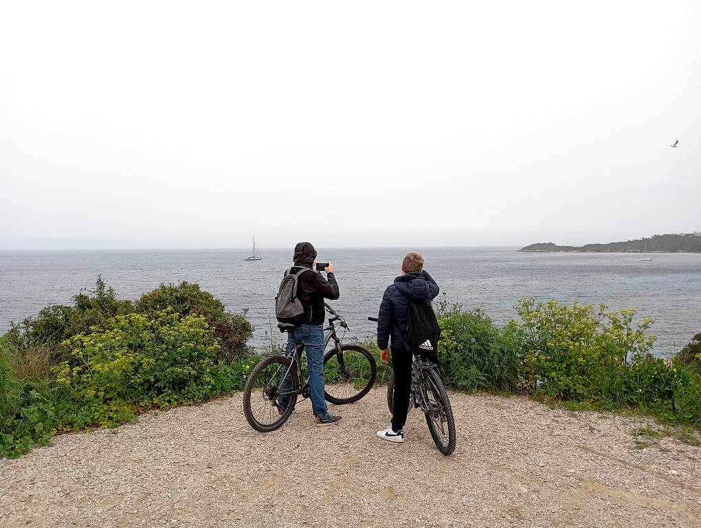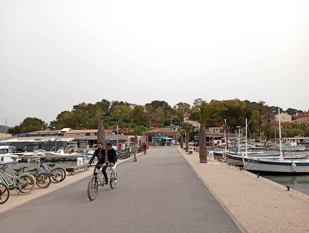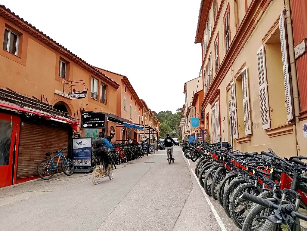 Διασχίζοντας με ποδήλατο την Quai Lélia Le Ber, λίγο πριν την επιβίβαση στο πλοίο που συνδέει το Porquerolles με το λιμάνι Tour Fondue, στο νότιο άκρο της χερσονήσου Giens.