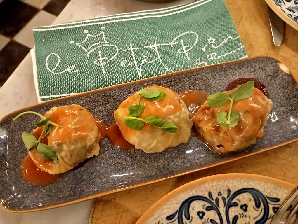 Πιάτο από την κατηγορία εδεσμάτων με πρωταγωνιστές προϊόντα της Γης, με τίτλο «Lamb kefta my way», που αποτελείται από αρνίσια κεφτεδάκια που συνοδεύονται με hummus καρότου με κύμινο, καρυκεύματα από χουρμάδες και αμύγδαλα, τραγανά ρεβίθια και χυμό αρνιού. Να σημειώσουμε ότι εκτός από το εξαιρετικό φαγητό στον «Μικρό Πρίγκηπα» σερβίρονται και πολύ ιδιαίτερα cocktails, αλλά και μοναδικά κρασιά, αυστηρά επιλεγμένα από τον ίδιο τον Ronan Kernen.