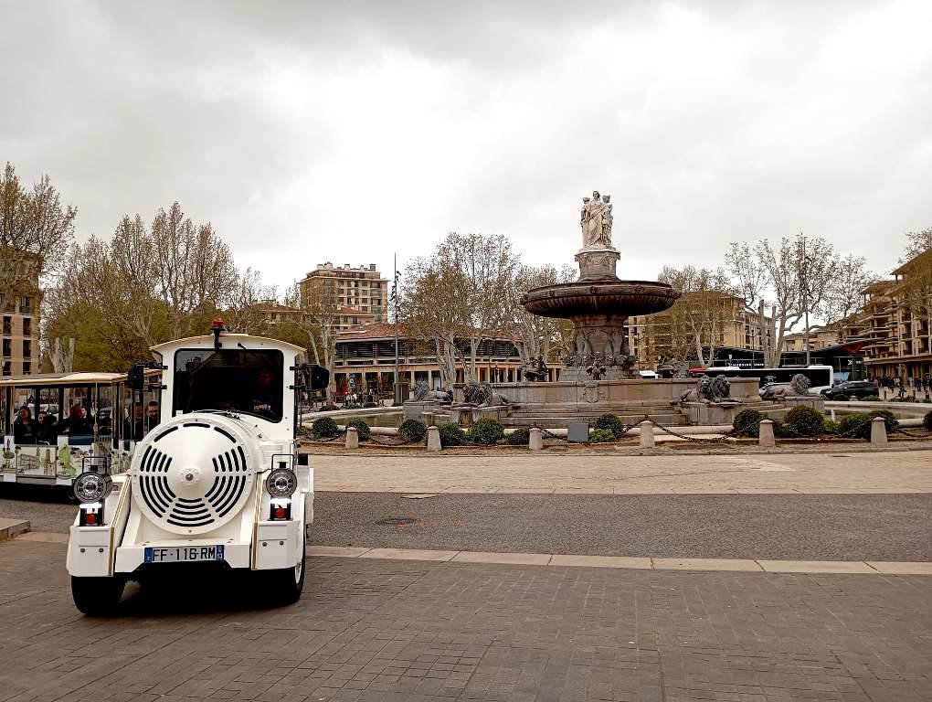 Την ίδια περιοχή, όπου κυριολεκτικά φαίνεται να χτυπάει η καρδιά της πόλης, χρησιμοποιεί ως αφετηρία του το τραινάκι που πραγματοποιεί τον γύρο του ιστορικού κέντρου της Aix…