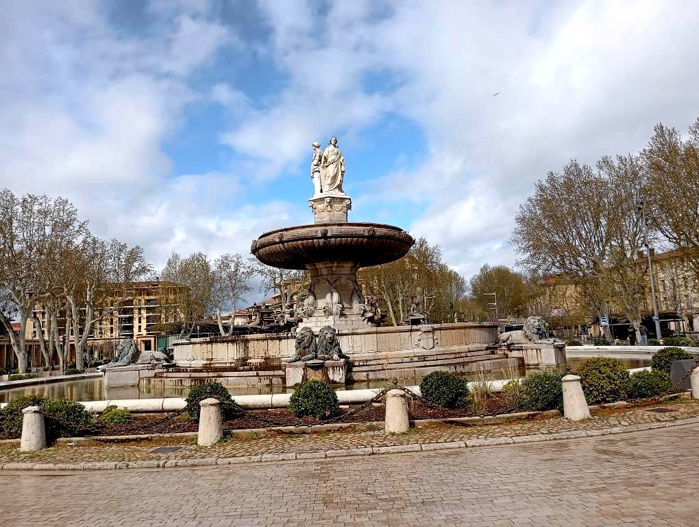 Η Fontaine de la Rotonde σχεδιάστηκε από τον μηχανικό Théophile de Tournadre, εγκαινιάστηκε το 1860 και αποτελεί ένα από τα πιο γνωστά μνημεία στην Aix-en-Provence. Η λεκάνη του σιντριβανιού έχει διάμετρο 32 μέτρα, το νερό υψώνεται στα 12 μέτρα ύψος, ενώ η συνολική διάμετρός του είναι 41 μέτρα.