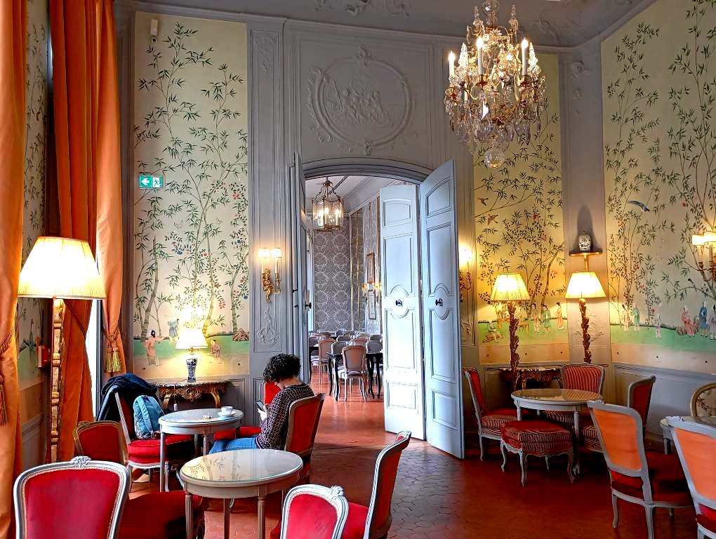 Στο “Hotel de Caumont – Centre d’Art”, έχουν φιλοξενηθεί πολλές εκθέσεις αφιερωμένες, μεταξύ άλλων, στη Marilyn Monroe, στον Fernando Botero, στον Marc Chagall κ.άλ. Στη φωτο το Café Caumont, στο ισόγειο του Κέντρου, που πραγματικά μας μεταφέρει στον 18ο αιώνα, ενώ η βεράντα του προσφέρει μοναδική με θέα στον γαλλικό κήπο, στην καρδιά της συνοικίας Mazarin.