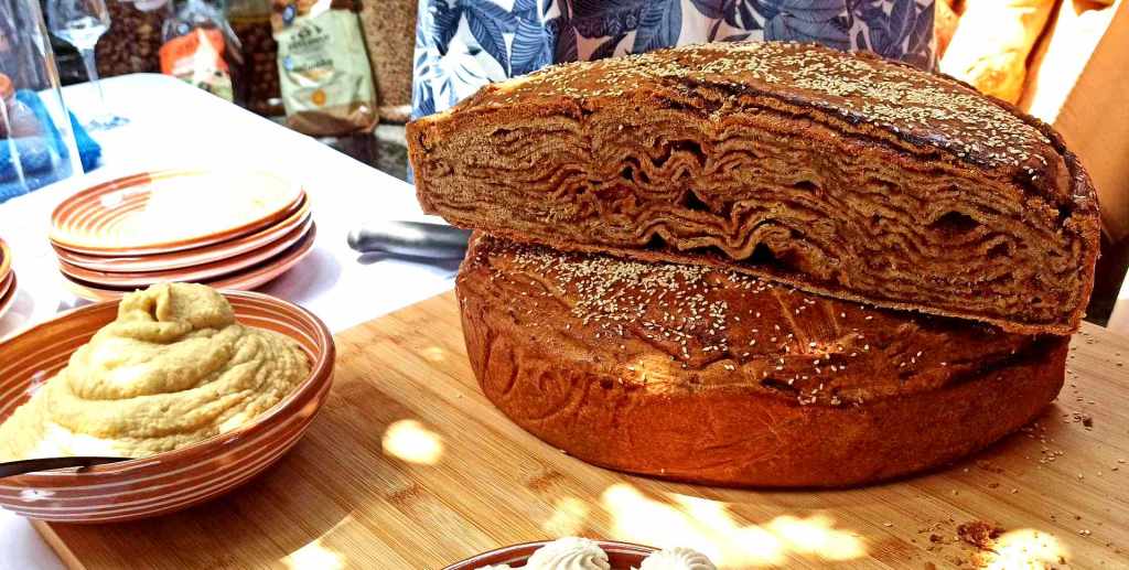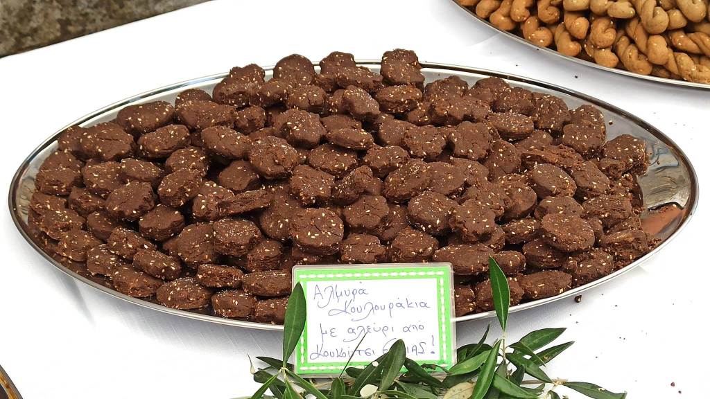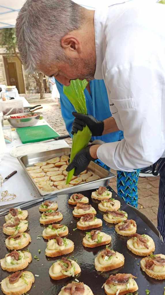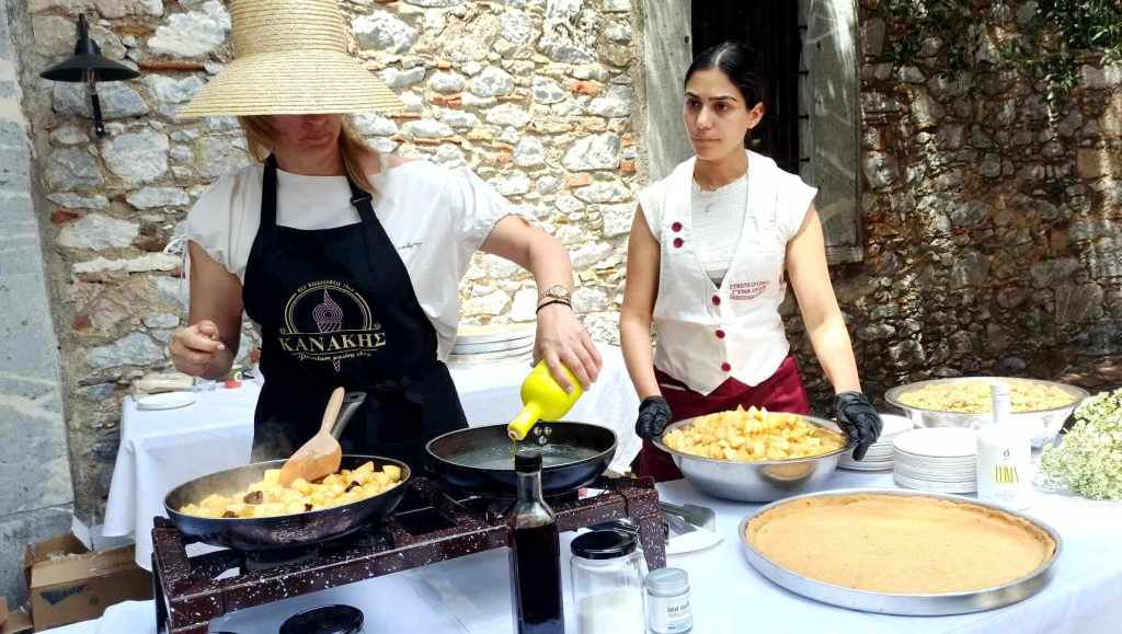 Η Chef Ζαχαροπλαστικής Άννα Σπανού – Κανάκη, βρέθηκε στη Λέσβο από το διάσημο μαγαζί του «Κανάκη», στη Φιλαδέλφεια και μας ετοίμασε το παγωτό καϊμάκι της γιαγιάς της, με φρέσκο πρόβειο γάλα ημέρας από τον Μεσότοπο, το οποίο συνόδευσε με extra παρθένο ελαιόλαδο και ανθό αλατιού, το σέρβιρε δε δίπλα σε μία ζεστή μηλόπιτα με ελαιόλαδο, σταφίδες, μπαχαρικά και λικέρ cherry του Γυναικείου Συνεταιρισμού Παρακοίλων.