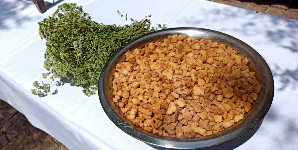 Για την βάση: 8 τεμάχια παξιμάδια χαρούπι τριμμένα
