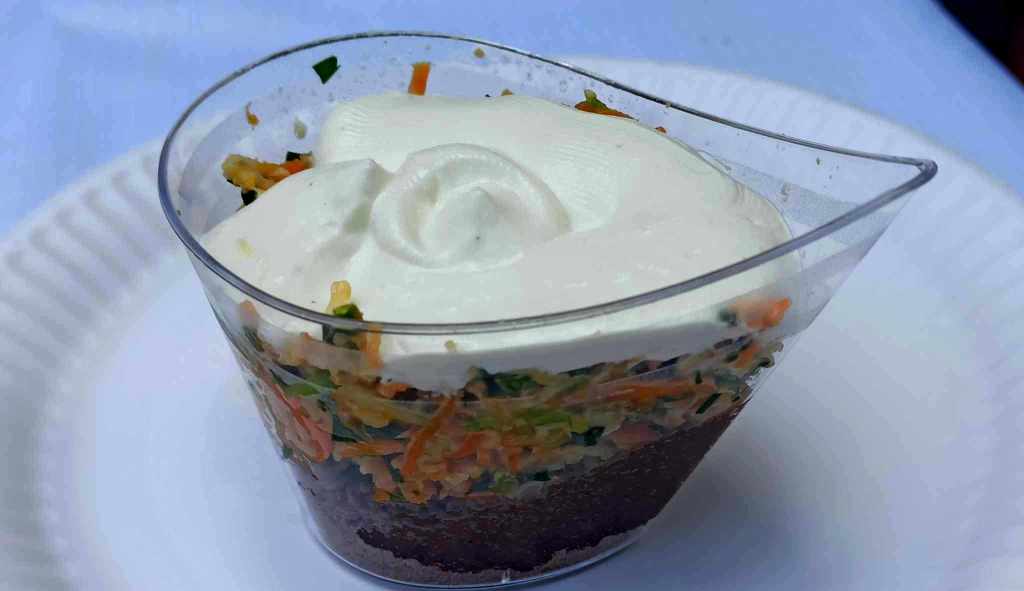 1.Ταρτάρ γαρίδας σε βάση από παξιμάδι χαρούπι και γαλάκτωμα ελαιολάδου με γιαούρτι