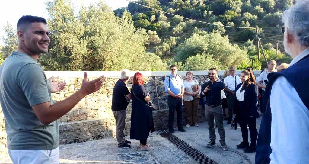 Ακολούθησε η εμπεριστατωμένη ξενάγηση του ιδιοκτήτη και ψυχής του όλου project Sigri Olive Mill, του Αντώνη Τιρπιντήρη, ο οποίος με το ίδιο πάθος μας συνόδευσε σε μια αξέχαστη βόλτα στους ελαιώνες της οικογένειας -πριν καταλήξουμε στο Ελαιοτριβείο-, όπου φιλοξενούνται πολλά και διαφορετικά αυτοφυή δέντρα στα οποία έχουν, επίσης, προστεθεί ακόμα περισσότερες ποικιλίες από όλο τον κόσμο, ενώ φυτεύονται ενεργά νεαρά ελαιοδενδρύλλια τα τελευταία 10 χρόνια.