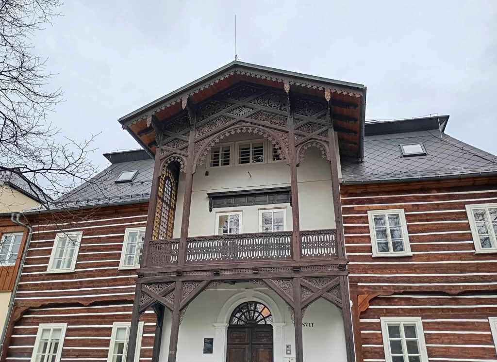 Το υπέροχο αυτό art nouveau κτήριο -ένα από τα συνολικά 4 που χρησιμοποιεί το Μουσείο-, με στοιχεία φλοράλ, σχεδιάστηκε και κατασκευάστηκε μεταξύ 1903 και 1904, ανήκε δε αρχικά στην εξαγωγική εταιρεία Zimmer & Schmidt. Ο Emilian Herbig, ένας εξέχων αρχιτέκτονας από το Jablonec, ήταν υπεύθυνος για την επέκταση της δεξιάς πτέρυγας, μεταξύ 1922 και 1923. Πρόκειται για ένα εξαιρετικό δείγμα αρχιτεκτονικής Jablonec Art Nouveau, που ανακηρύχθηκε διατηρητέο κτήριο το 1958, υπέστη, ωστόσο, αρκετές δομικές αλλαγές τα επόμενα χρόνια.