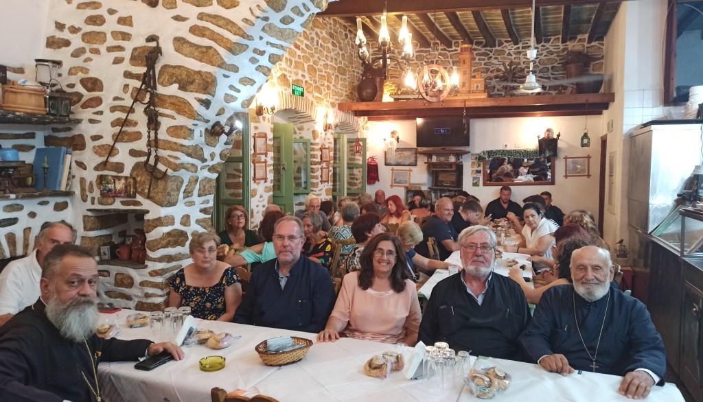 Ακολούθησε δείπνο με παραδοσιακά ματσάτα (τοπικά ζυμαρικά) Φολεγάνδρου -στους φιλόξενους χώρους του εστιατορίου «Ασύγκριτο», στη Χώρα-, που προσέφερε σε όλους τους εκλεκτούς Χανιώτες επισκέπτες μας ο Πρωτοπρεσβύτερος π. Παναγιώτης Μαρινάκης, εμπνευστής και οικοδεσπότης του Ανταμώματος.