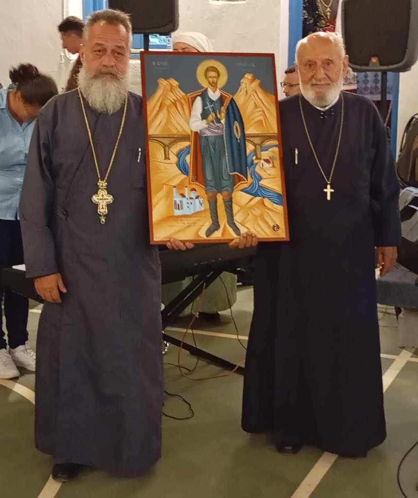 Τελευταία αφήσαμε την Μητρόπολή μας και τον Σεβασμιώτατο Μητροπολίτη μας κ. Δαμασκηνό, με την ευχή και ευλογία του οποίου πραγματοποιούμε αυτή την ευλογημένη εκδημία. Μου ανέθεσε δε, να σας μεταφέρω τις ευχές, την ευλογία του και την αγάπη του, στον πατέρα Παναγιώτη, στους ιερείς, στον κ. Δήμαρχο και σε όλους εσάς.