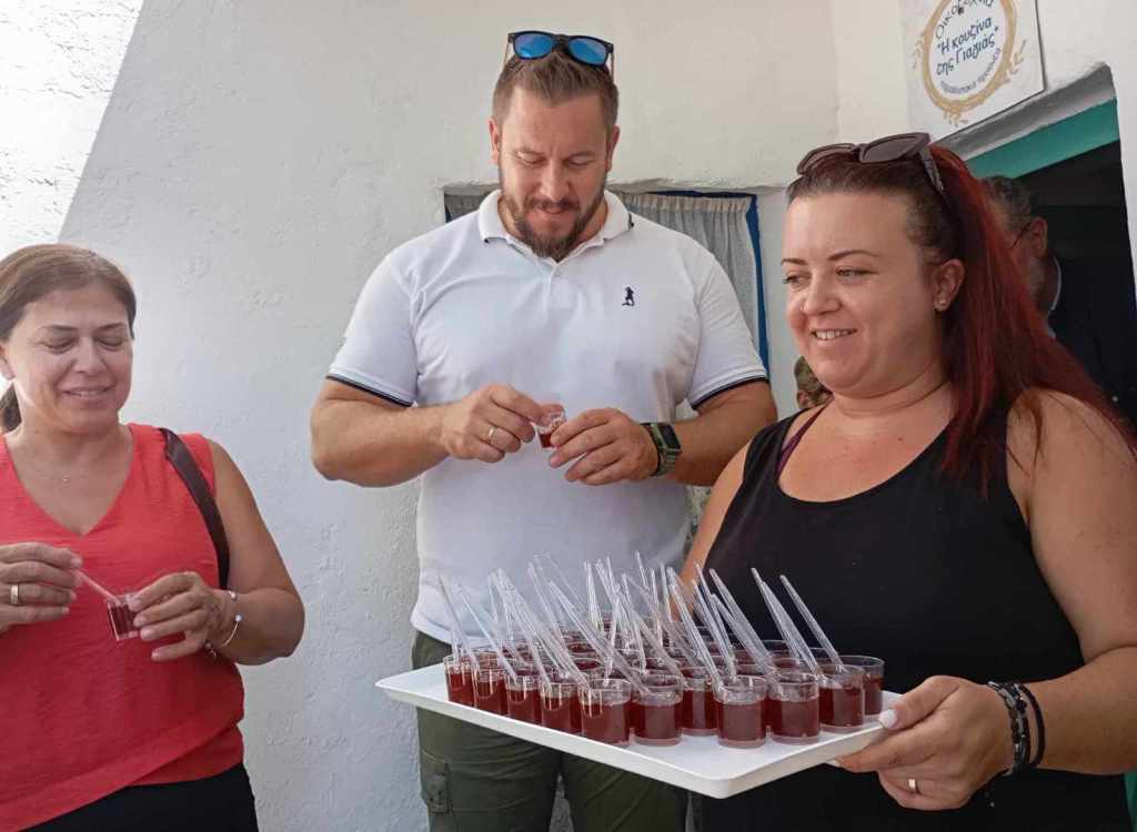 Το πρωί της Τρίτης 3 Σεπτεμβρίου οι εξ Αλικιανού εκλεκτοί επισκέπτες μας επισκέφθηκαν την Απάνω Μεριά, φθάνοντας έως το τέρμα του χωριού και στην περιοχή-τοπόσημο της Χρυσόπηγης, ξεναγήθηκαν στο Λαογραφικό Μουσείο, επισκέφθηκαν κατάστημα παραδοσιακών προϊόντων και απήλαυσαν ένα πλούσιο και αυθεντικό φολεγανδρίτικο «κολάτσισμα» με κουλούρες, ντόπιο τυρί, σουρωτένια καλασούνα, μακαρόνες, σπανακόπιτα και άλλα χειροποίητα καλούδια.