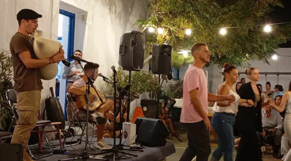 5.Γλέντι σε Φολεγανδρίτικους ρυθμούς με τους μουσικούς: Γιώργο Μαρινάκη (βιολί), Θανάση Άγα (λαούτο), Σταυρούλα Δαλιάνη (τραγούδι) και σε Κρητικούς ρυθμούς με τους μουσικούς: Νικόλαο Σπαθαράκη (λύρα), Γεώργιο Ψαρουδάκη (λαούτο) και Νικόλαο Ανδρεάκη (κιθάρα).