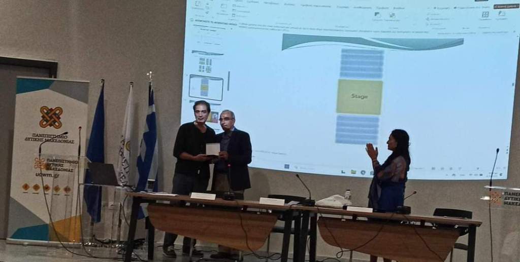 Ακολούθησε η βράβευση του Καθηγητή Φωτιάδη από τη Σοφία Γ. Ιακωβίδου, εκπρόσωπο, με την ιδιότητά της ως Δημοτικής Συμβούλου, του Δημάρχου Νεάπολης Συκεών Σίμου Δανιηλίδη.