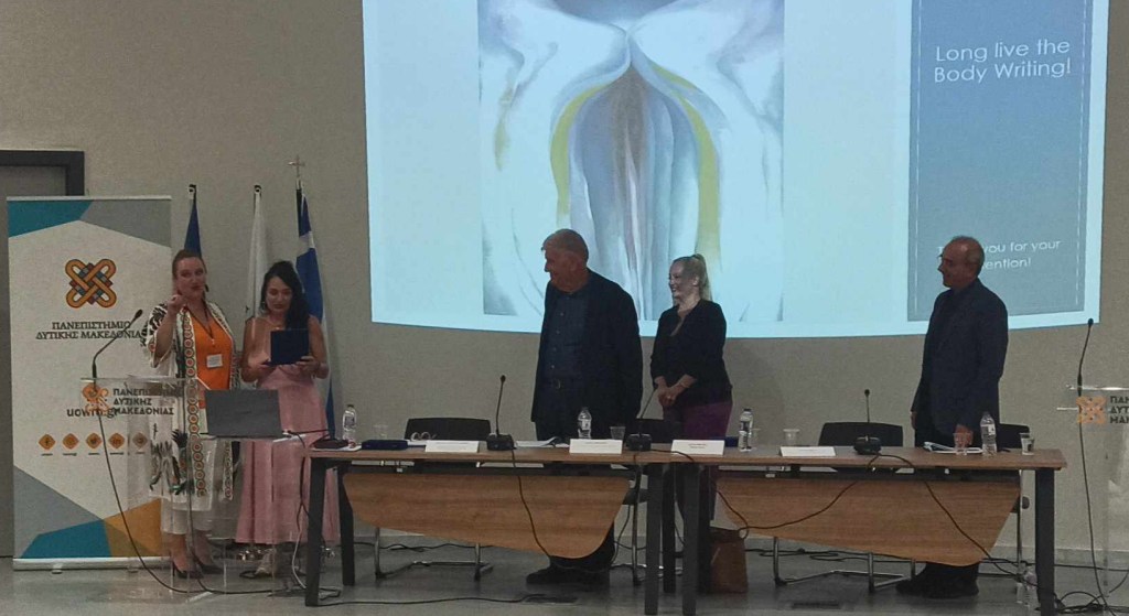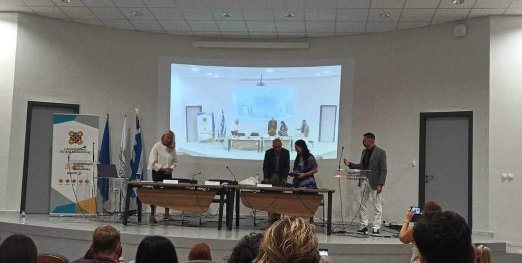 Παράλληλα, στο πλαίσιο των θεσμοθετημένων τιμητικών βραβεύσεων προς τους αποφοίτους του Τμήματος Δημιουργικής Γραφής του Π.Δ.Μ., τιμήθηκε φέτος ο Σκηνοθέτης Κώστας Χαραλάμπους, με τον Καθηγητή Τριαντάφυλλο Η. Κωτόπουλο να του παραδίδει την τιμητική πλακέτα, ενώ λίγο νωρίτερα τιμητική πλακέτα, για το σύνολο της προσφοράς της στον θεσμό των Διεθνών Συνεδρίων Δημιουργικής Γραφής -και όχι μόνο-, επιδόθηκε επίσης στην Καθηγήτρια Τζίνα Καλογήρου, από τον Αντιπρύτανη Ακαδημαϊκών Υποθέσεων και Διασφάλισης Ποιότητας του Π.Δ.Μ. Νικόλαο Σαριαννίδη, Καθηγητή Τμήματος Λογιστικής και Χρηματοοικονομικής της Σχολής Οικονομικών Επιστημών.