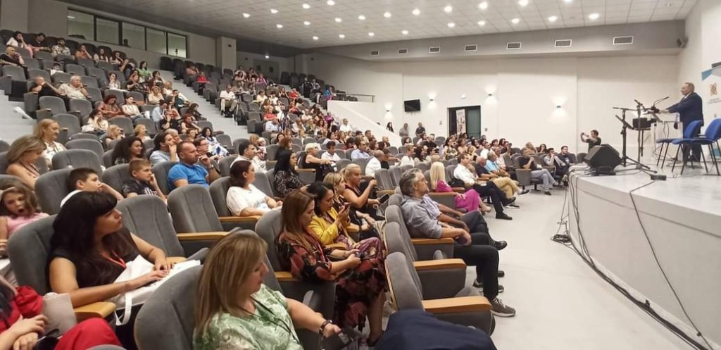 Το Αμφιθέατρο του Π.Δ.Μ. φιλοξένησε την εναρκτήρια βραδιά του Συνεδρίου, την κεντρική ομιλία της οποίας με θέμα: «Η Ποντιακή διάλεκτος δεν έχει το κουράγιο να πεθάνει», παρουσίασε ο ακάματος σκαπανέας του Ποντιακού πολιτισμού Κωνσταντίνος Φωτιάδης, Ομότιμος Καθηγητής Π.Δ.Μ., τον οποίο προλόγισε η Σοφία Γ. Ιακωβίδου, Τοπογράφος Μηχανικός, MA Δημιουργικής Γραφής, Δημοτική Σύμβουλος Δήμου Νεάπολης Συκεών.