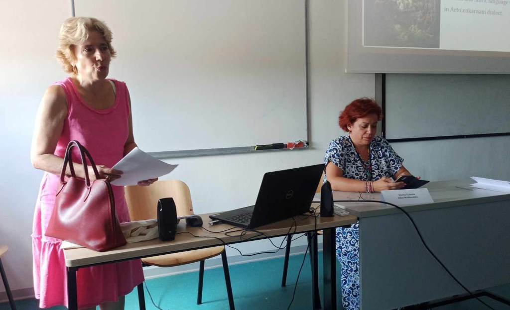Πρώτη από τους επίσημους ομιλητές πήρε τον λόγο η Νικολέττα Τσιτσανούδη – Μαλλίδη, Καθηγήτρια Γλωσσολογίας και Ελληνικής Γλώσσας στο Παιδαγωγικό Τμήμα Νηπιαγωγών της Σχολής Επιστημών Αγωγής του Πανεπιστημίου Ιωαννίνων, με θέμα: Η διδασκαλία της γλώσσας και η Δημιουργική Γραφή σε απρόβλεπτα περιβάλλοντα κρίσεων. Μια ιδεολογική προσέγγιση. Την προλόγισε ο Βασίλειος Σαμπατακάκης.