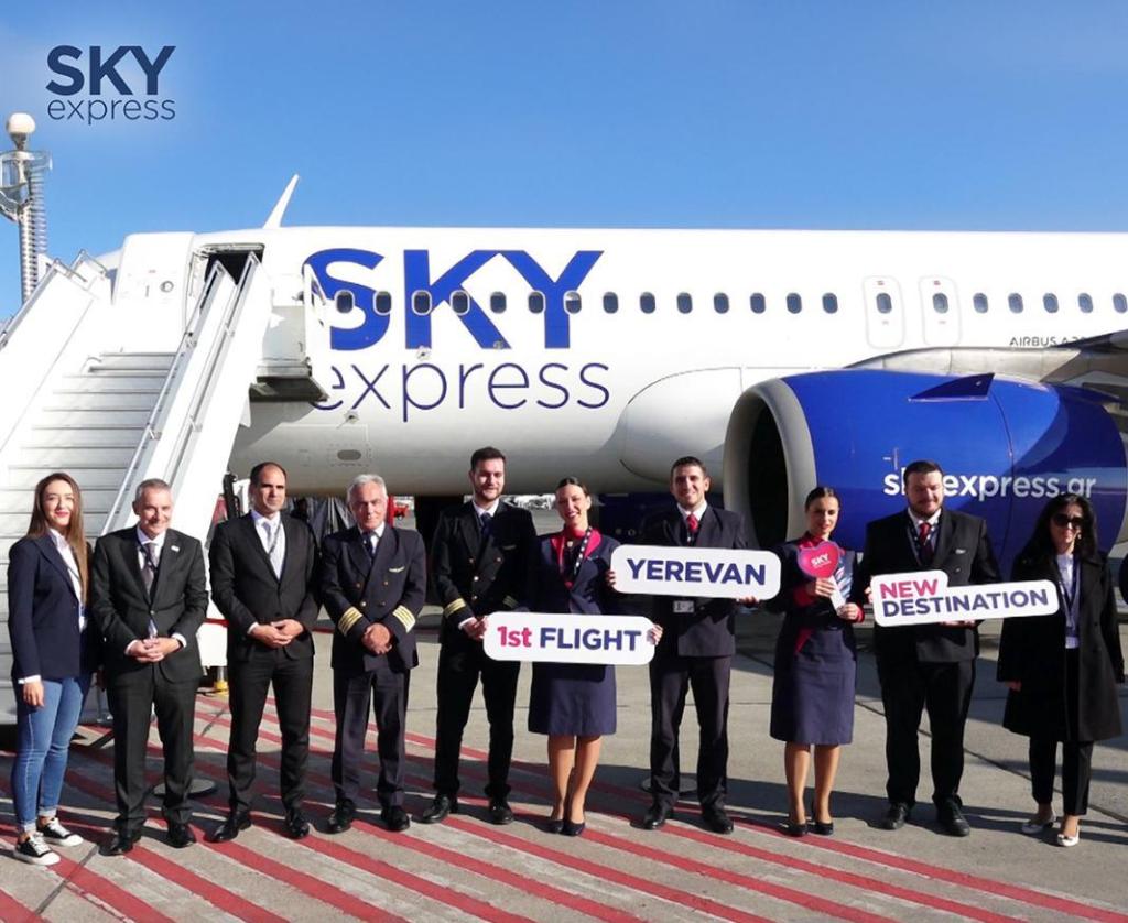 Η SKY express ενισχύει περαιτέρω τη συνδεσιμότητα της Ελλάδας με την περιοχή του Καυκάσου, καθώς πλέον συνδέει απευθείας την Αθήνα με την πρωτεύουσα της Αρμενίας. Η πρώτη πτήση της SKY express προσγειώθηκε στις αρχές Ιανουαρίου στο Διεθνές Αεροδρόμιο Ζβάρτνοτς του Γερεβάν, σε κλίμα θερμής υποδοχής από στελέχη του Aεροδρομίου. Ιδιαίτερα τιμητική ήταν και η παρουσία του Πρέσβη της Ελλάδας στην Αρμενία Χρήστου Σοφιανόπουλου. Το νέο απευθείας δρομολόγιο της SKY express πραγματοποιείται με τα υπερσύγχρονα αεροσκάφη της εταιρείας Airbus 320neo και Airbus 321neo, τρεις φορές την εβδομάδα (Τρίτη, Πέμπτη, Κυριακή), ενισχύοντας κατ΄ αυτόν τον τρόπο τους τουριστικούς, επιχειρηματικούς και πολιτιστικούς δεσμούς μεταξύ των δύο χωρών. Η προσθήκη του Γερεβάν στο διεθνές δίκτυό της SKY express σηματοδοτεί την ισχυροποίηση της παρουσίας της μεγάλης ελληνικής αεροπορικής εταιρείας σε δυναμικές αγορές του εξωτερικού. Παράλληλα, αναδεικνύει τη στρατηγική σημασία της περιοχής ως σημαντικού κόμβου ανάμεσα στην Ευρώπη και την Ασία.