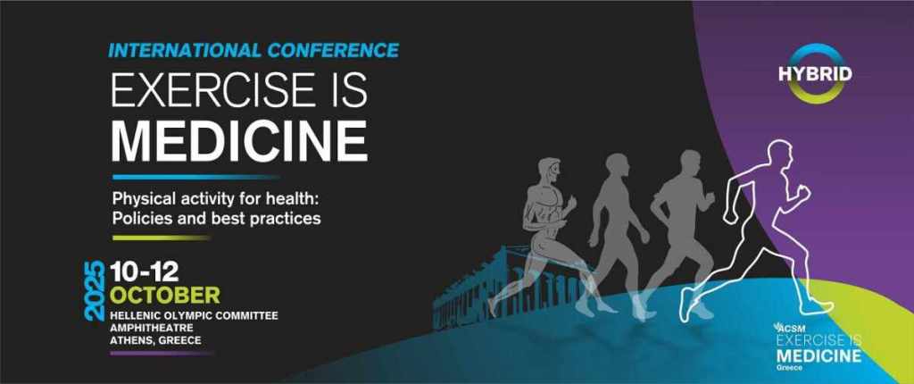 Το Εθνικό Κέντρο “Exercise is Medicine – Greece”, μέλος του παγκόσμιου δικτύου “Exercise is Medicine®”, διοργανώνει στην Αθήνα (10 – 12 Οκτωβρίου) το Διεθνές Συνέδριο “Exercise is Medicine”, με το οποίο είναι συνδεδεμένη και η ετήσια -εν προκειμένω του 2025- Συνάντηση των Εθνικών Κέντρων “Exercise Is Medicine” της Ευρώπης.