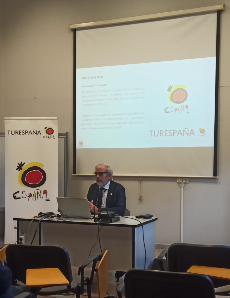 Η φετινή διοργάνωση αφιέρωσε μία συνεδρία στη διερεύνηση των προκλήσεων που θέτει η Τεχνητή Νοημοσύνη στη γλωσσική εκπαίδευση, παρέχοντας στους εκπαιδευτικούς την ευκαιρία να αναλογιστούν καινοτόμες παιδαγωγικές προσεγγίσεις, να μοιραστούν εμπειρίες και να ενισχύσουν την εμπειρογνωμοσύνη τους στη διδασκαλία και την εκμάθηση της Ισπανικής γλώσσας. Κατά τη διάρκεια του Συνεδρίου, ο Gonzalo Ceballos παρουσίασε, στο πλαίσιο της ομιλίας του, τις πρωτοβουλίες της Turespaña στον τομέα του τουρισμού με γλωσσικό προσανατολισμό. Απευθυνόμενο τόσο σε εξειδικευμένους ταξιδιωτικούς πράκτορες όσο και σε εκπαιδευτικούς, το πρόγραμμα αυτό υπογραμμίζει τη σημασία των Ισπανικών ως της τέταρτης πιο συχνά ομιλούμενης γλώσσας παγκοσμίως, με πάνω από 600 εκατομμύρια ανθρώπους που την μιλούν, όντας η επίσημη γλώσσα σε 22 χώρες, με συνεχώς αυξανόμενη εξέχουσα θέση στην παγκόσμια επικοινωνία και τις επιχειρήσεις.
